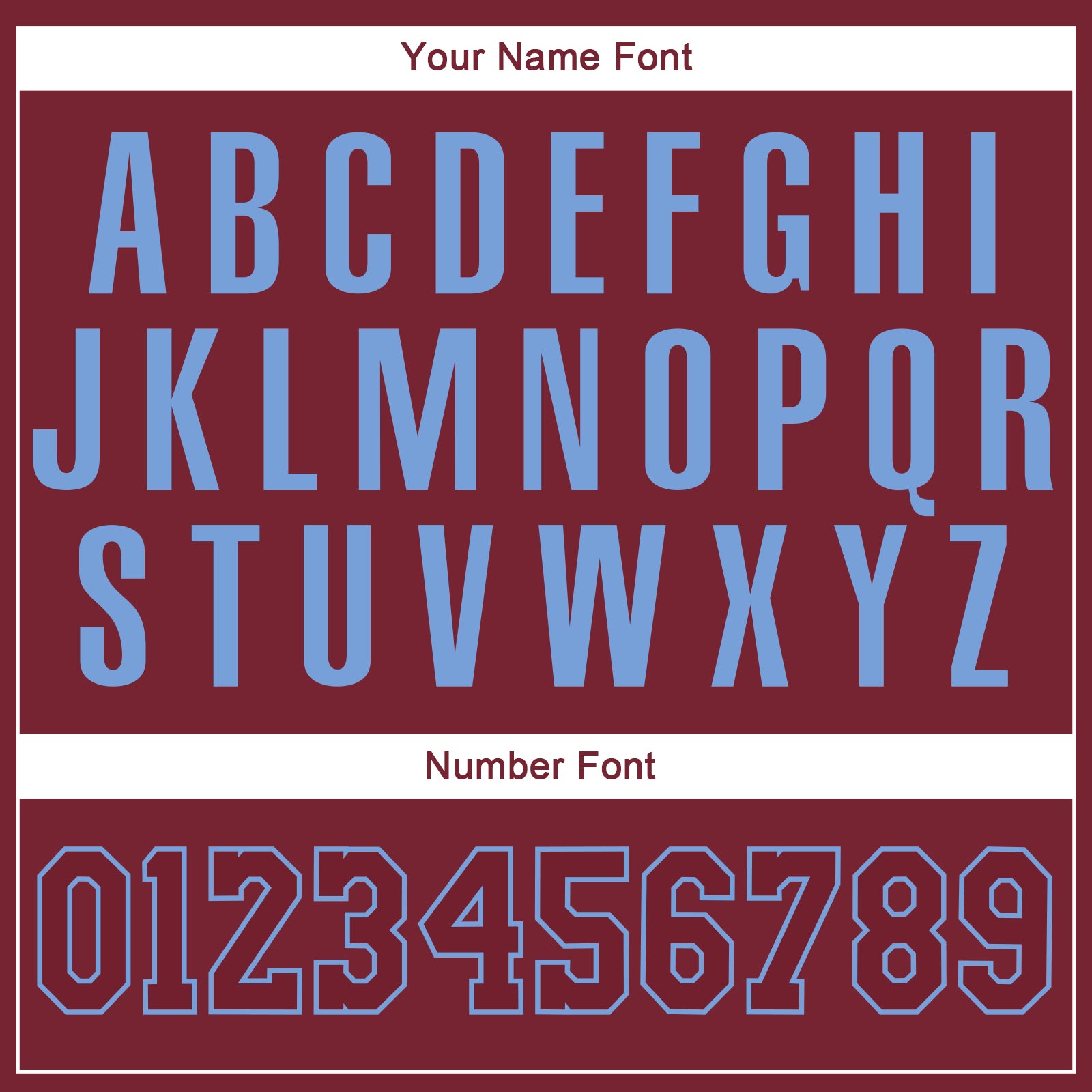 Personalized Stitched Burgundy Burgundy-Light Blue Sports Pullover Sweatshirt Hoodie Team Custom Name and Number