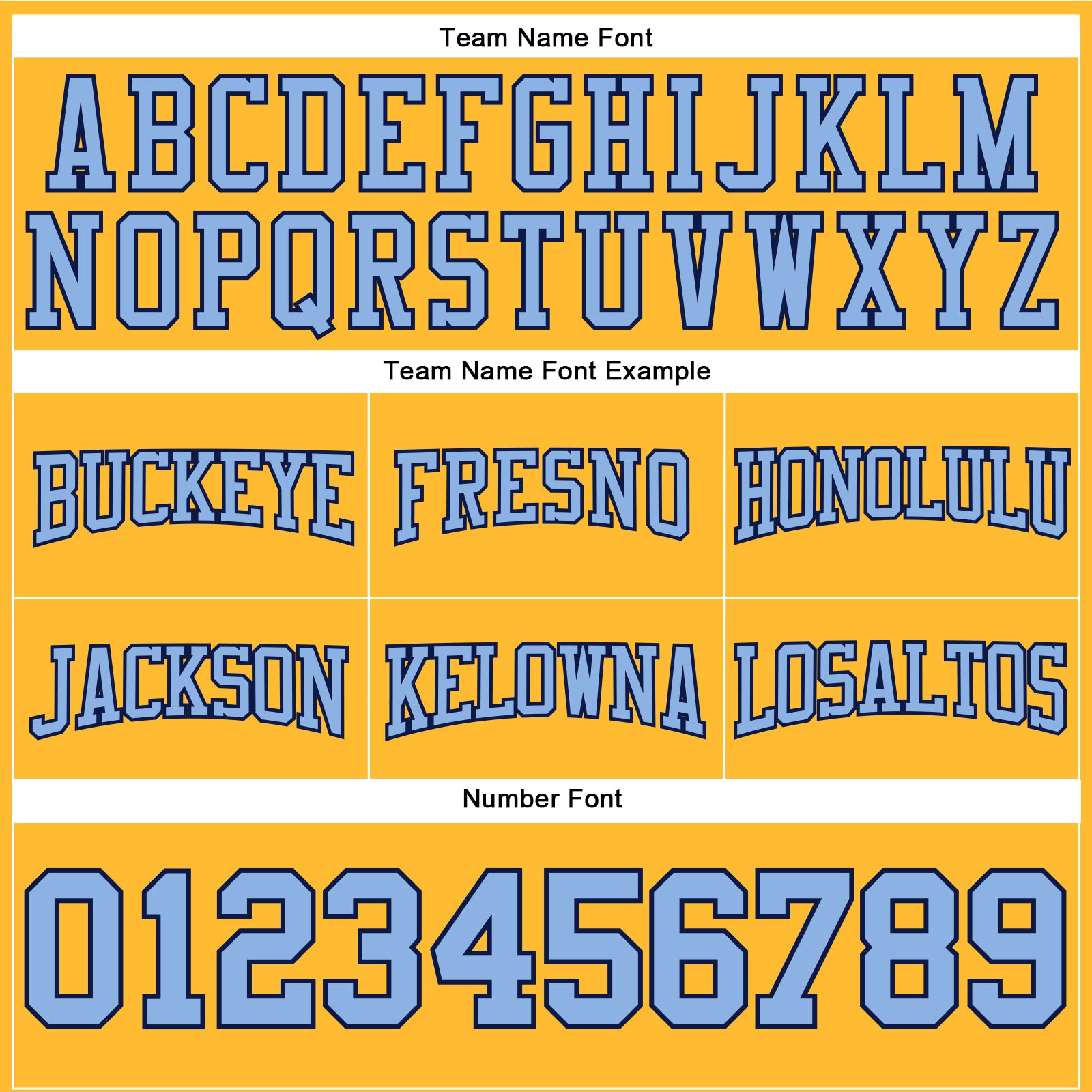 Personalized Stitched Gold Light Blue-Navy Football Pullover Sweatshirt Hoodie Team Custom Name and Number