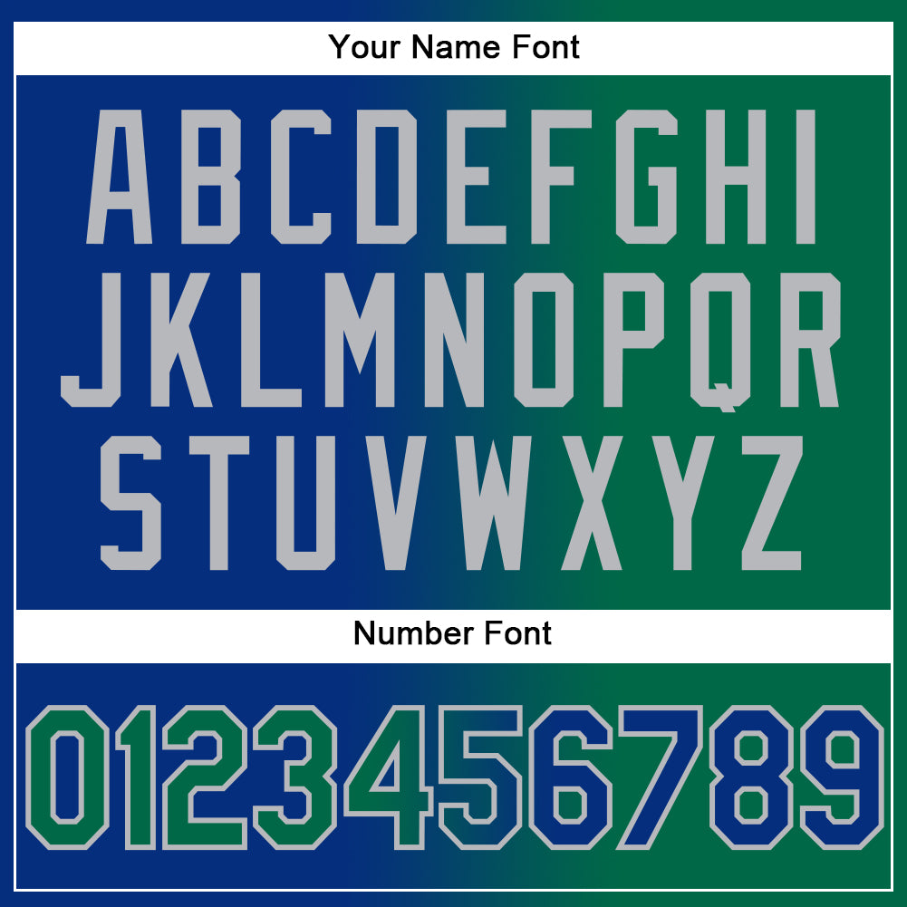 Personalized Stitched Royal Kelly Green-Gray Gradient Fashion Sports Pullover Sweatshirt Hoodie Team Custom Name and Number