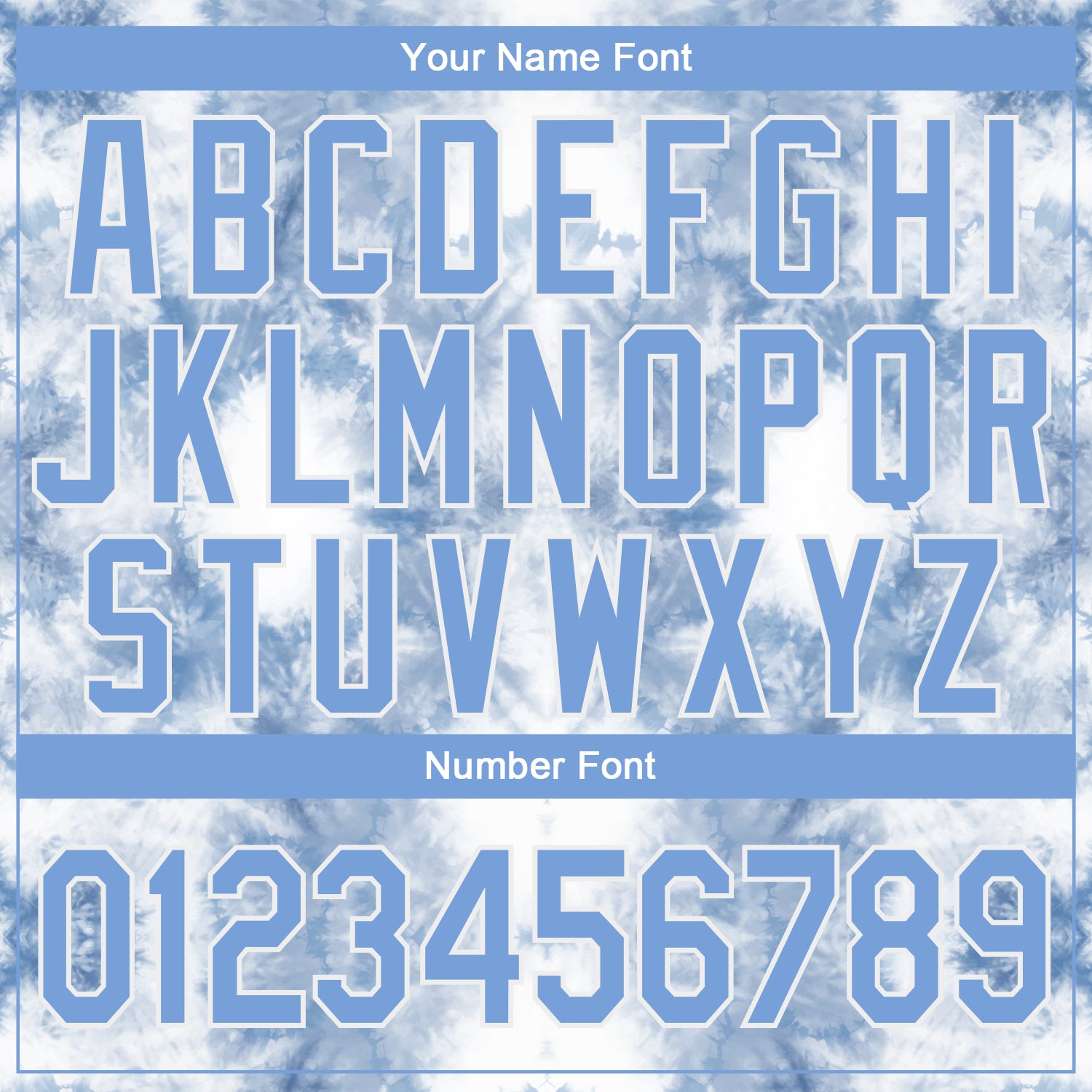 Personalized Stitched Tie Dye Light Blue-White 3D Watercolor Sports Pullover Sweatshirt Hoodie Team Custom Name and Number
