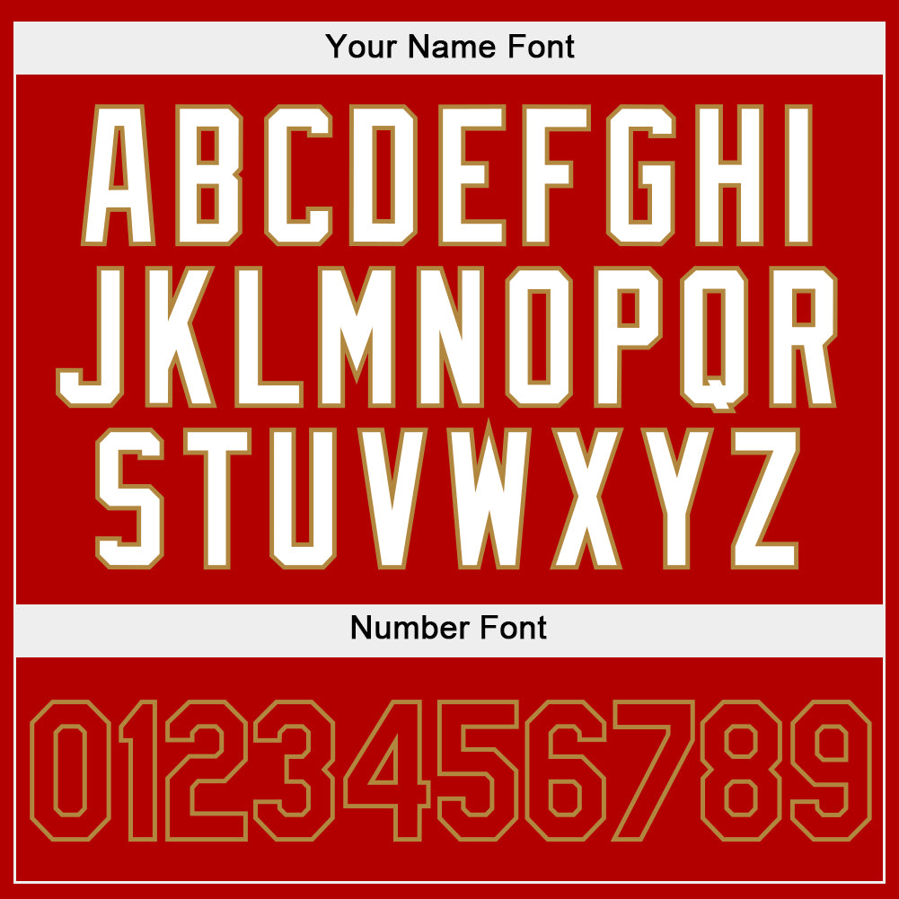 Personalized Stitched White Red-Old Gold Split Fashion Sports Pullover Sweatshirt Hoodie Team Custom Name and Number