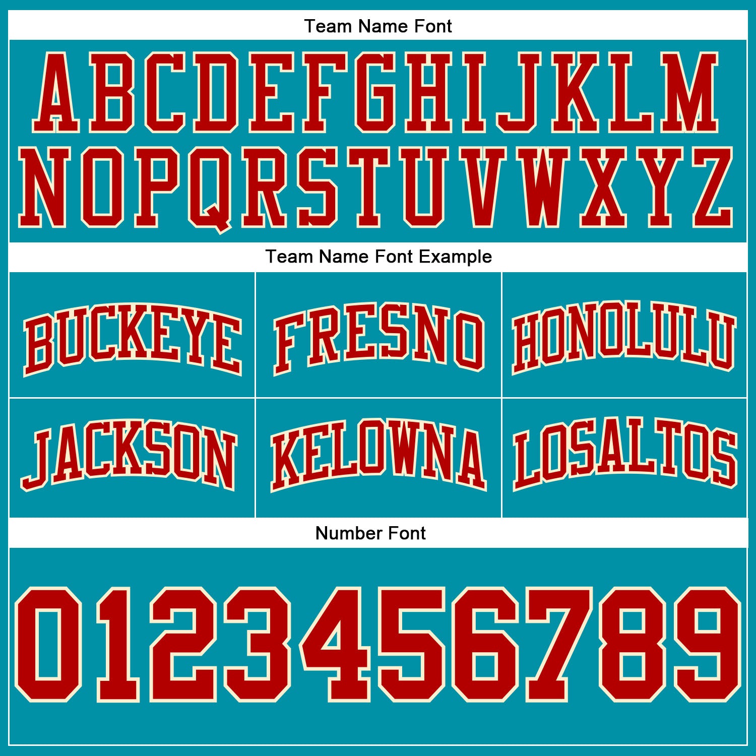 Custom Personalized Basketball Shorts with Team Name and Number – Authentic Teal Red-Cream Throwback Design Personalized