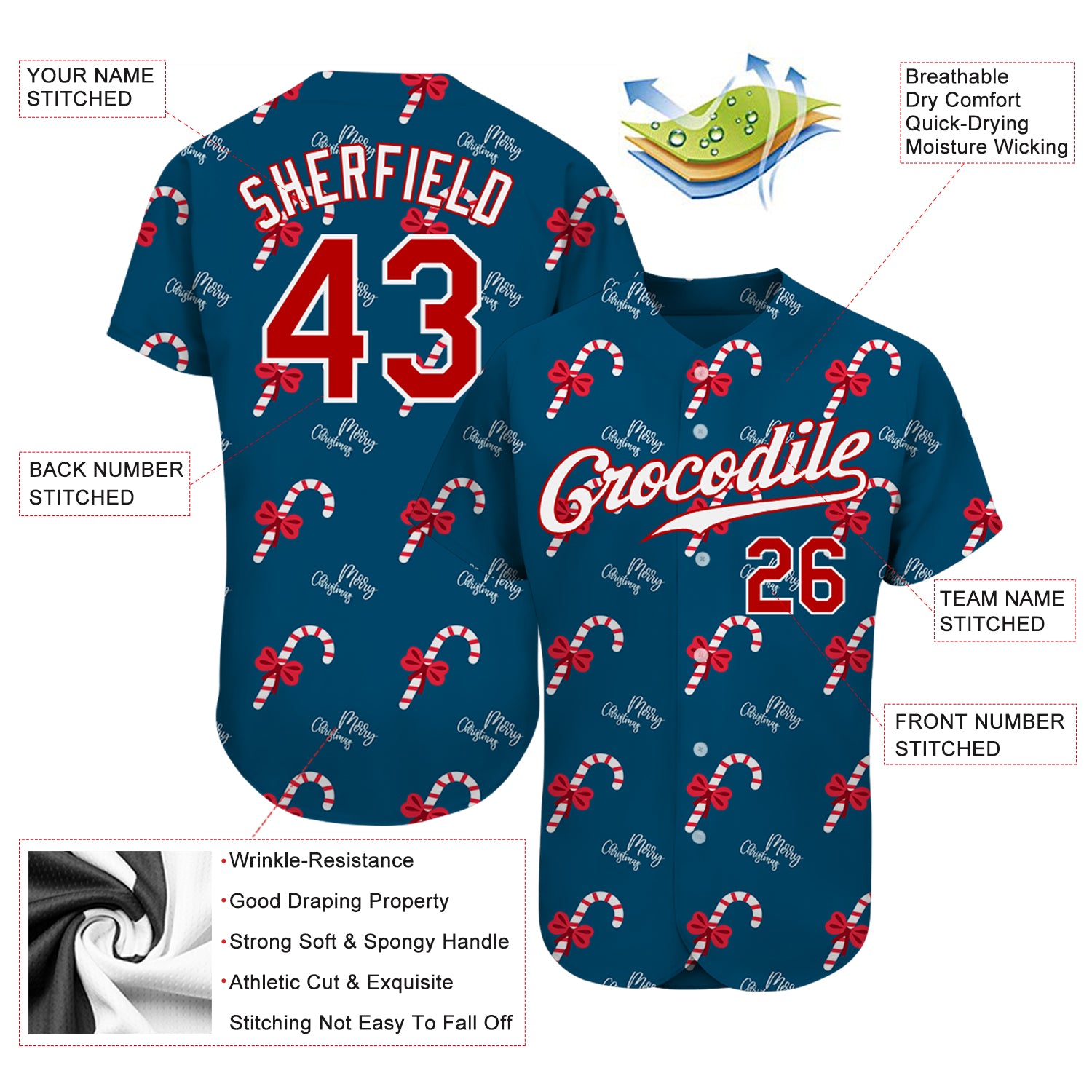Personalized Teal Red-White Christmas 3D Authentic Baseball Jersey Team Custom Name and Number