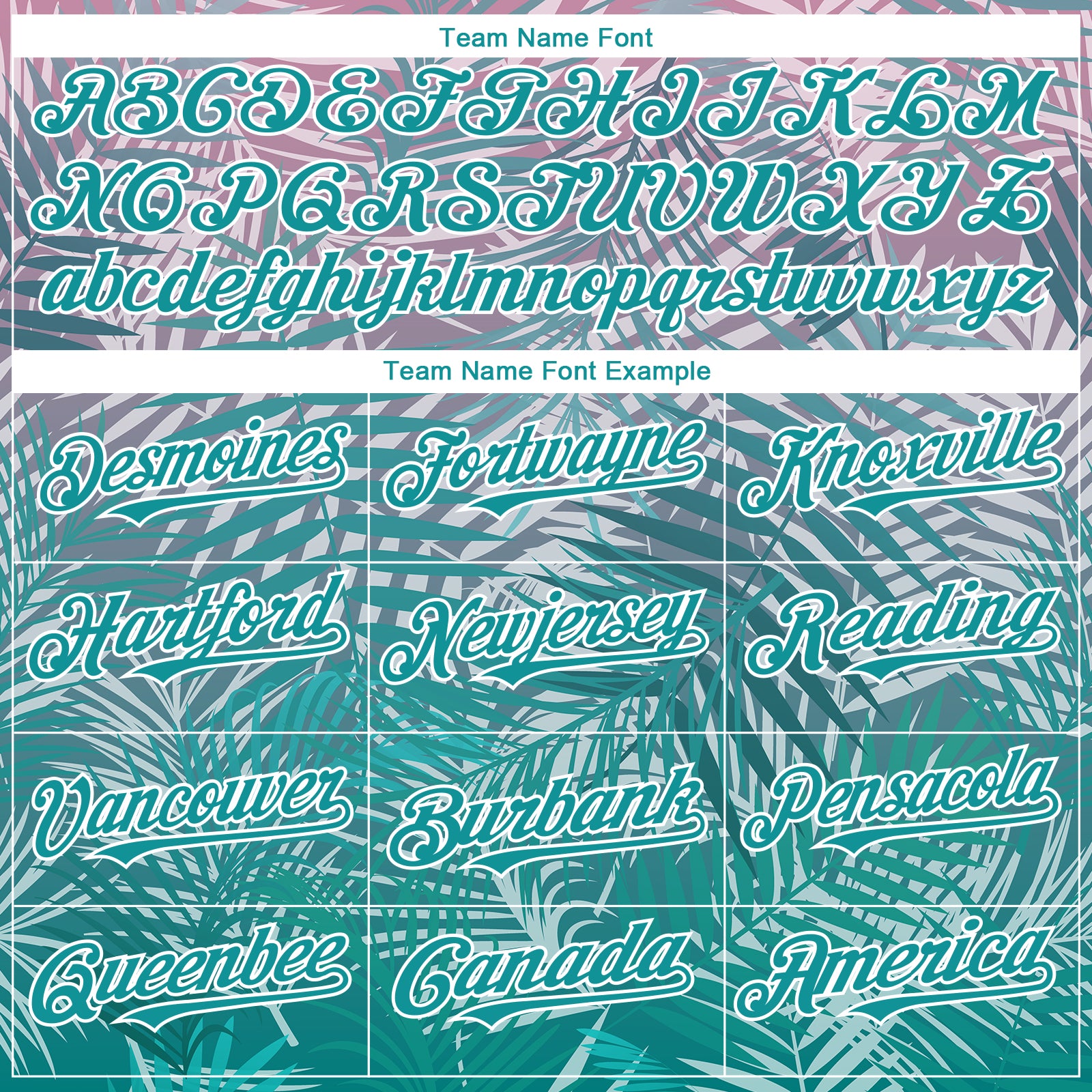 Personalized Teal White 3D Pattern Design Tropical Hawaii Palm Leaves Authentic Baseball Jersey Team Custom Name and Number