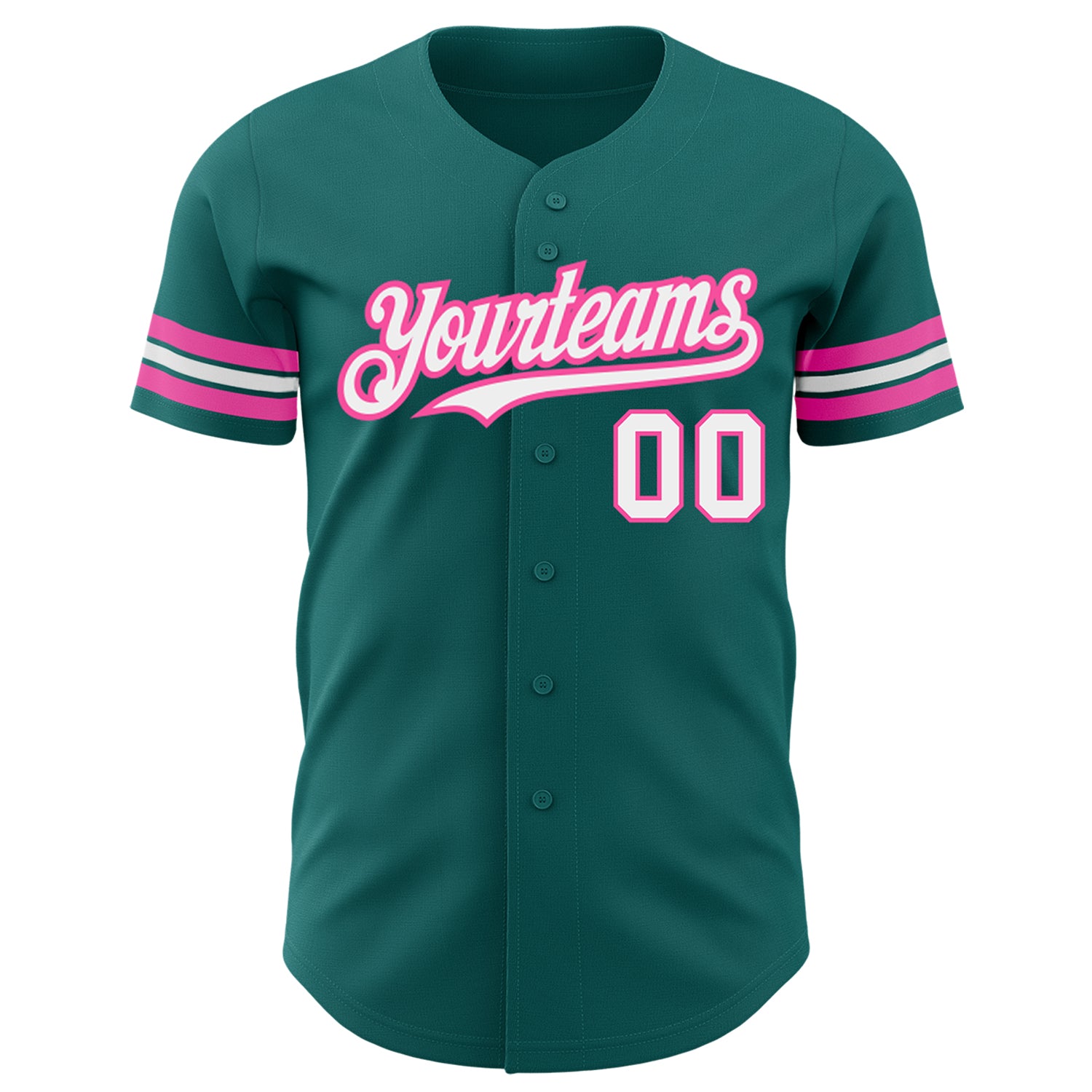 Personalized Teal White-Pink Authentic Baseball Jersey Team Custom Name and Number