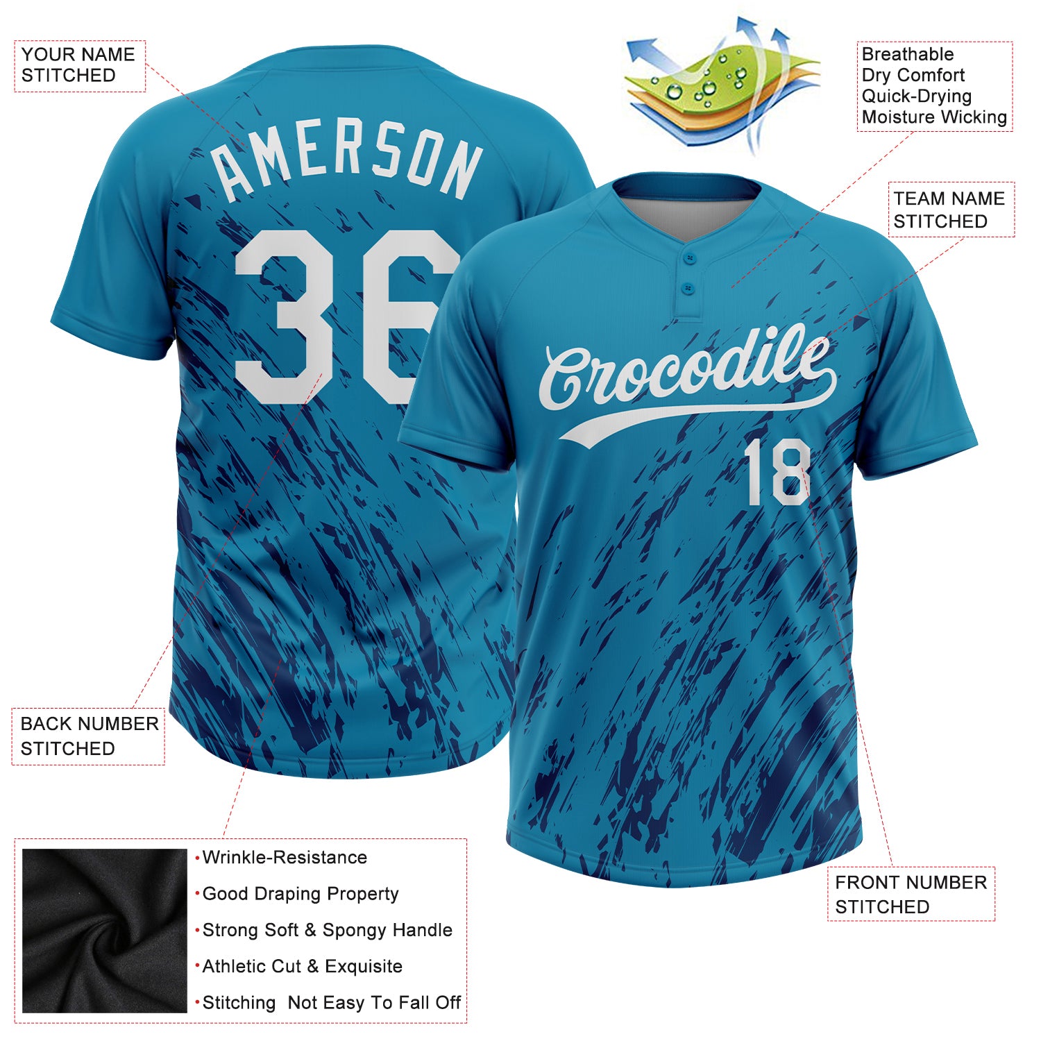 Personalized Teal White-Royal 3D Pattern Two-Button Unisex Softball Jersey Team Custom Name and Number