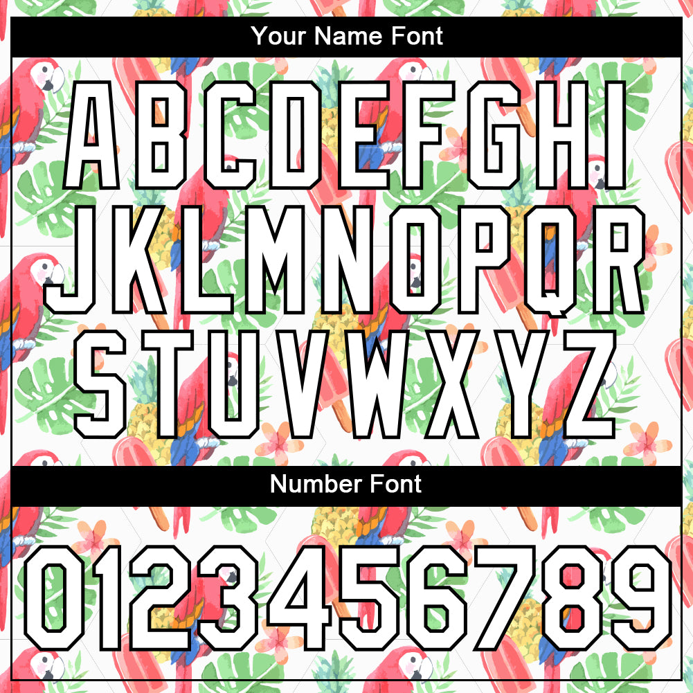 Personalized White Black 3D Pattern Design Tropical Hawaii Bird And Fruit Performance T-Shirt Team Custom Name and Number