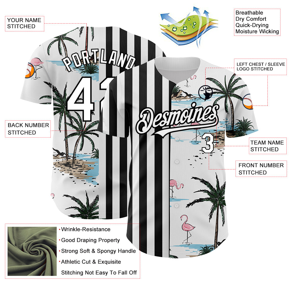 Personalized White Black 3D Pattern Design Tropical Hawaii Palm Trees Authentic Baseball Jersey Team Custom Name and Number