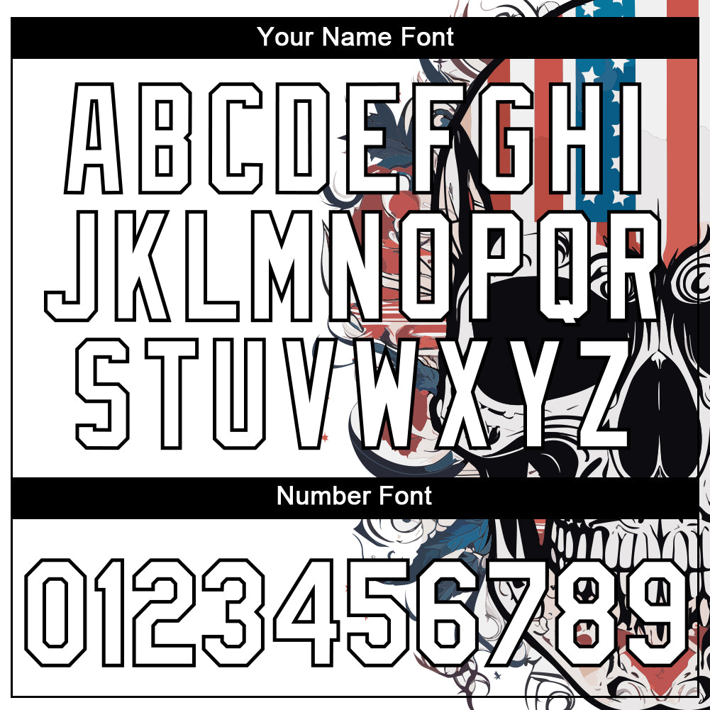Personalized White Black 3D Skull With American Flag Performance T-Shirt Team Custom Name and Number
