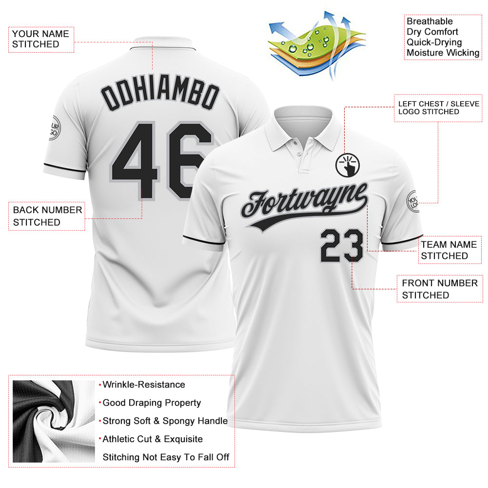 Personalized White Black-Gray Performance Vapor Golf Polo Shirt Team Custom Name and Number