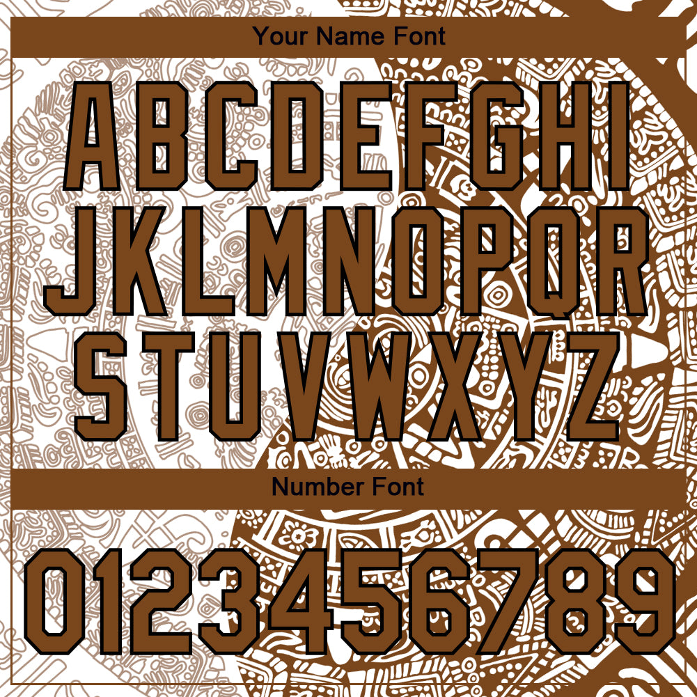 Personalized White Brown-Black 3D Pattern Design Ancient Shapes Performance T-Shirt Team Custom Name and Number