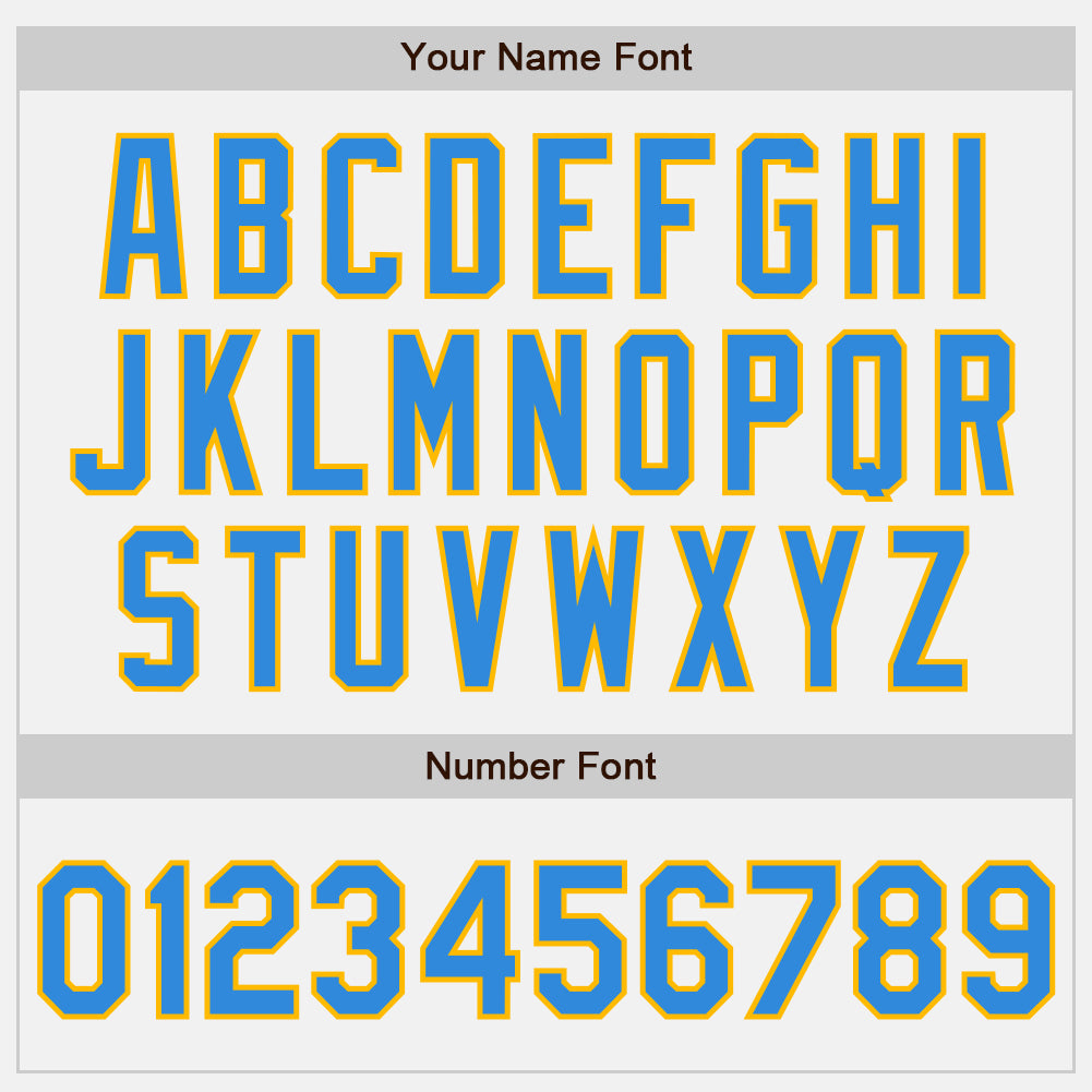Personalized White Electric Blue Gold-Black Bomber Full-Snap Varsity Letterman Two Tone Jacket Team Custom Name and Number