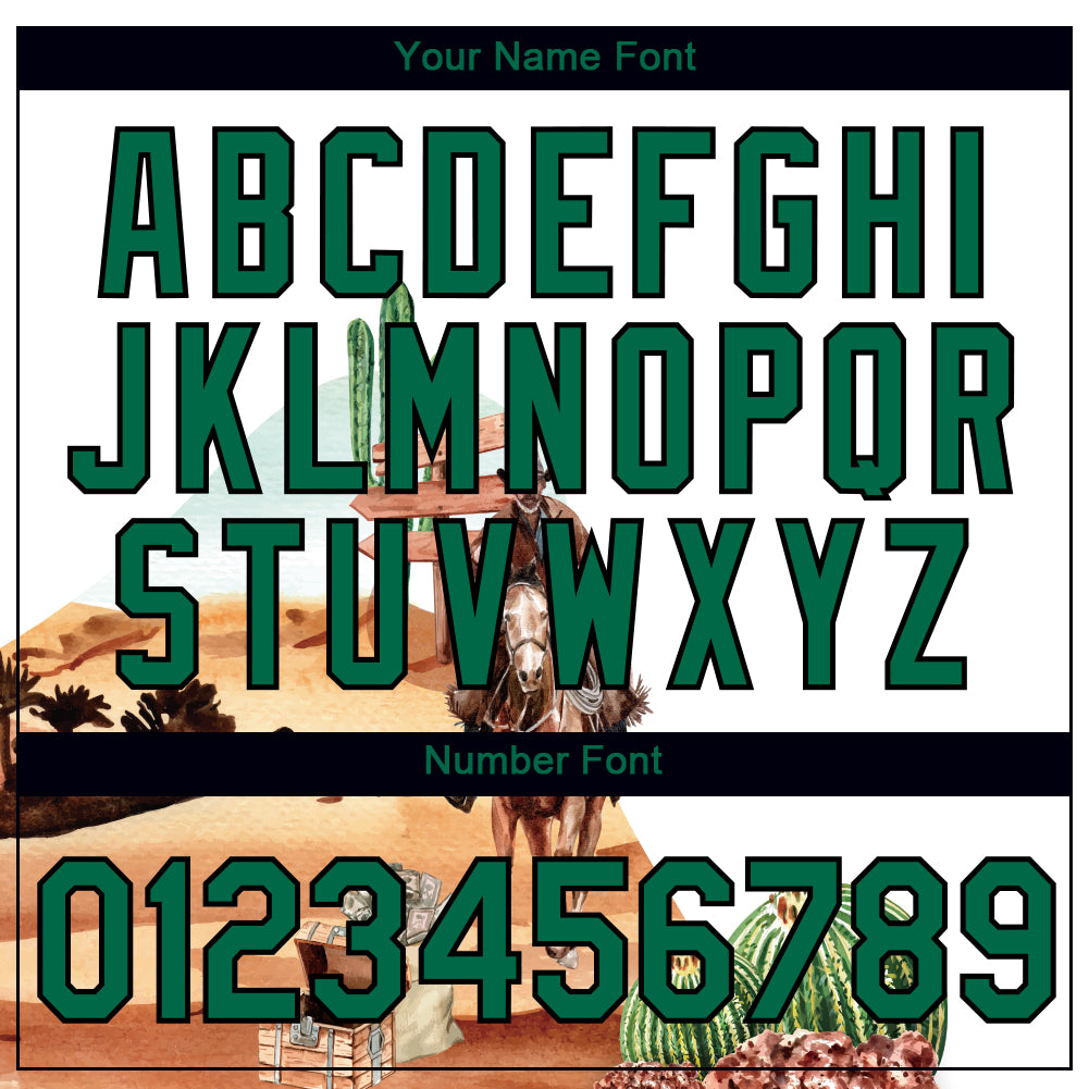 Custom Name and Number 3D Pattern Cowboy Rodeo Performance T-Shirt – Personalized White Kelly Green-Black Design Personalized