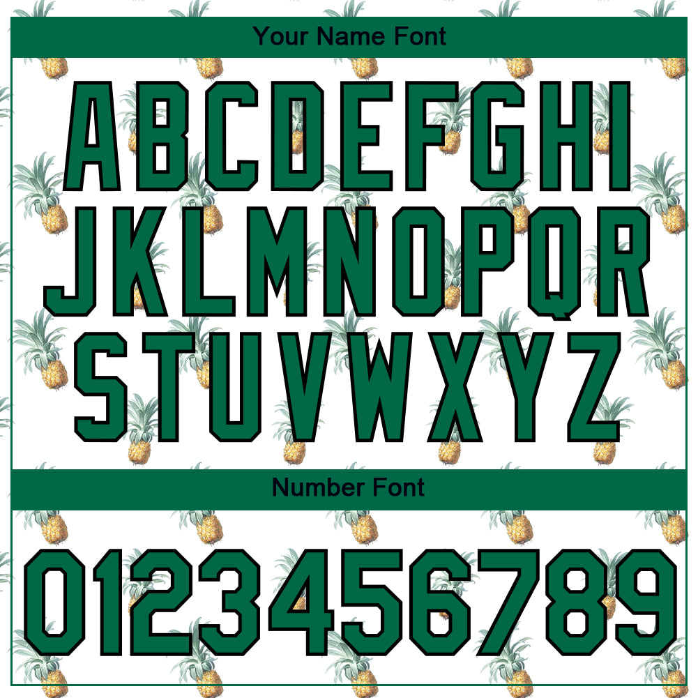 Personalized White Kelly Green-Black 3D Pattern Design Hawaii Tropical Pineapple Performance T-Shirt Team Custom Name and Number