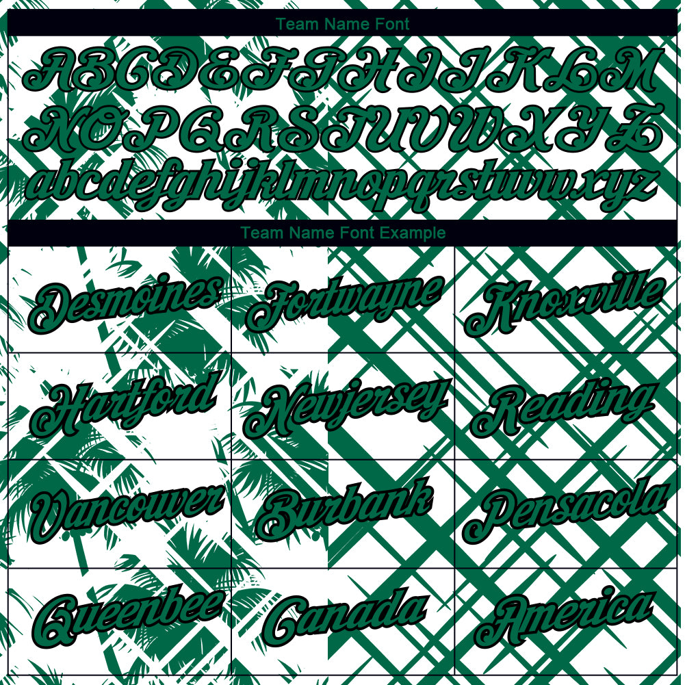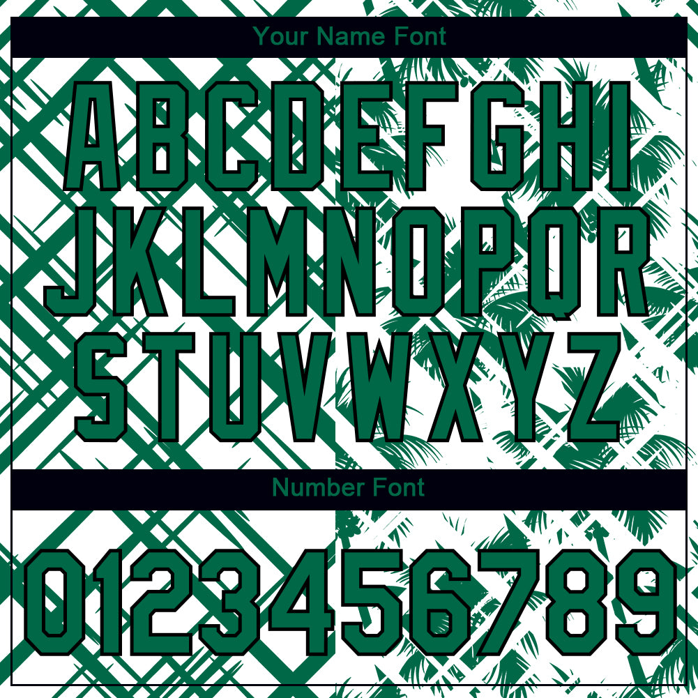 Personalized White Kelly Green-Black 3D Tropical Hawaii Trees Performance T-Shirt Team Custom Name and Number