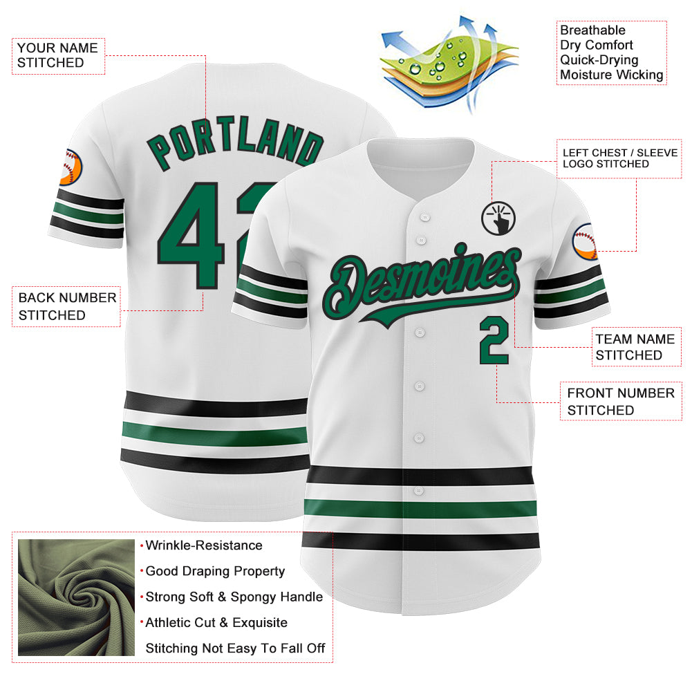 Custom Authentic Baseball Jersey Personalized with Team Name & Number – White Kelly Green-Black Line Personalized White Kelly