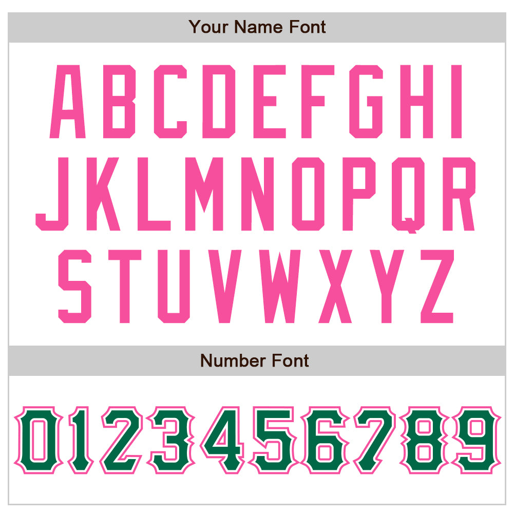 Custom Name and Number Personalized Baseball Jersey in White Kelly Green-Pink Authentic Raglan Sleeves Personalized White