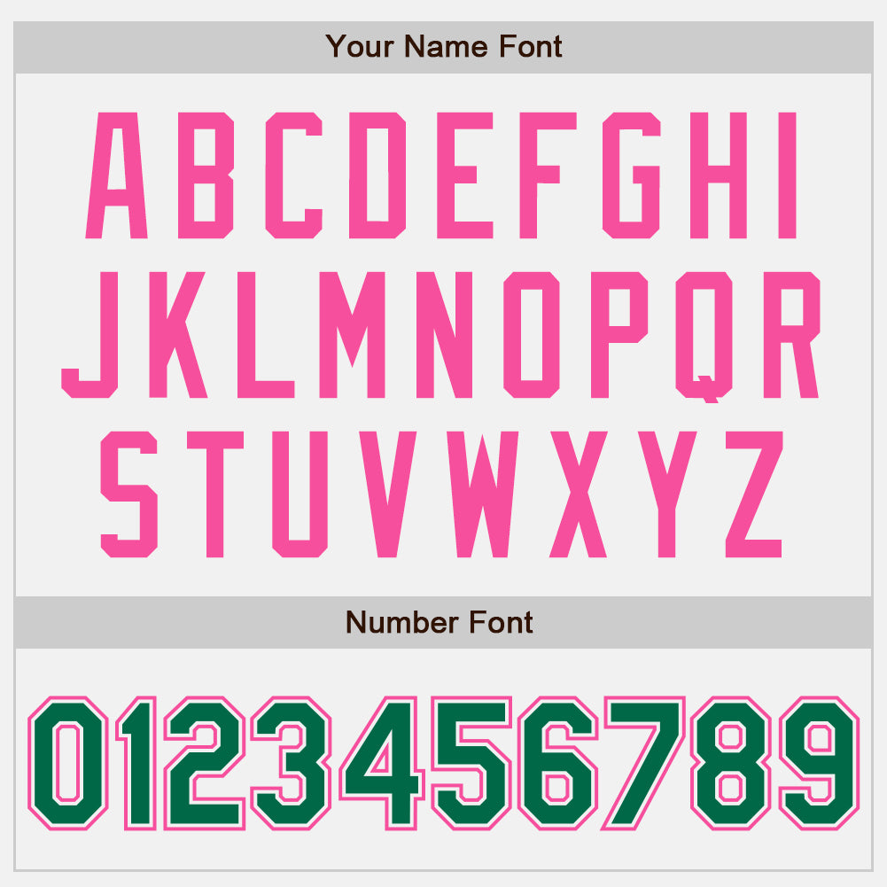 Custom Varsity Letterman Jacket – Personalized Two Tone White Kelly Green-Pink Full-Snap with Team Name and Number Personalized