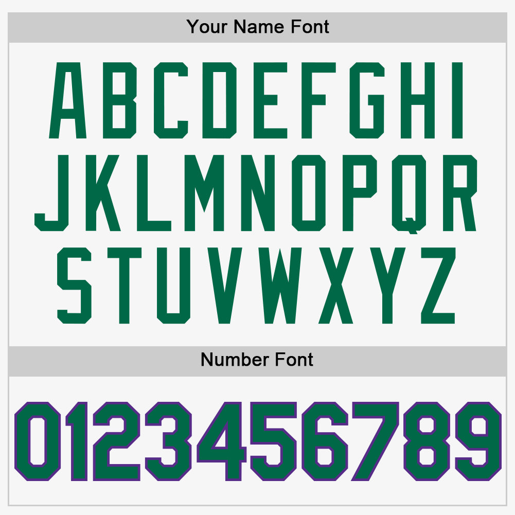 Custom Personalized Baseball Jersey with Name and Number – Authentic Sleeveless in White Kelly Green & Purple Personalized