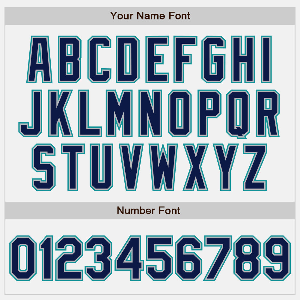 Personalized White Navy Pinstripe Gray-Teal Bomber Full-Snap Varsity Letterman Jacket Team Custom Name and Number