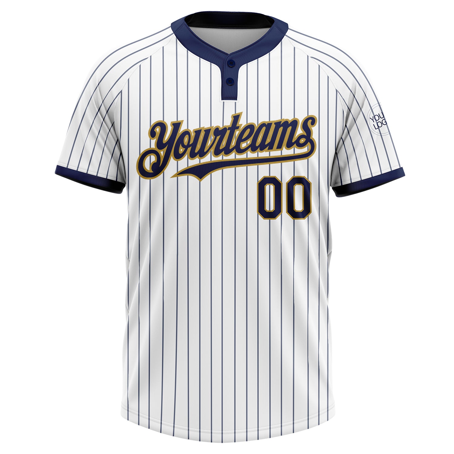 Personalized White Navy Pinstripe Old Gold Two-Button Unisex Softball Jersey Team Custom Name and Number
