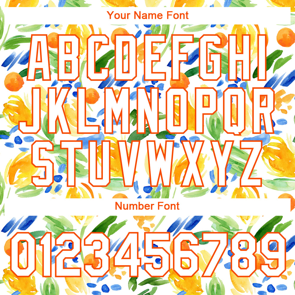 Personalized White Orange 3D Pattern Design Abstract Watercolor Flower Performance T-Shirt Team Custom Name and Number