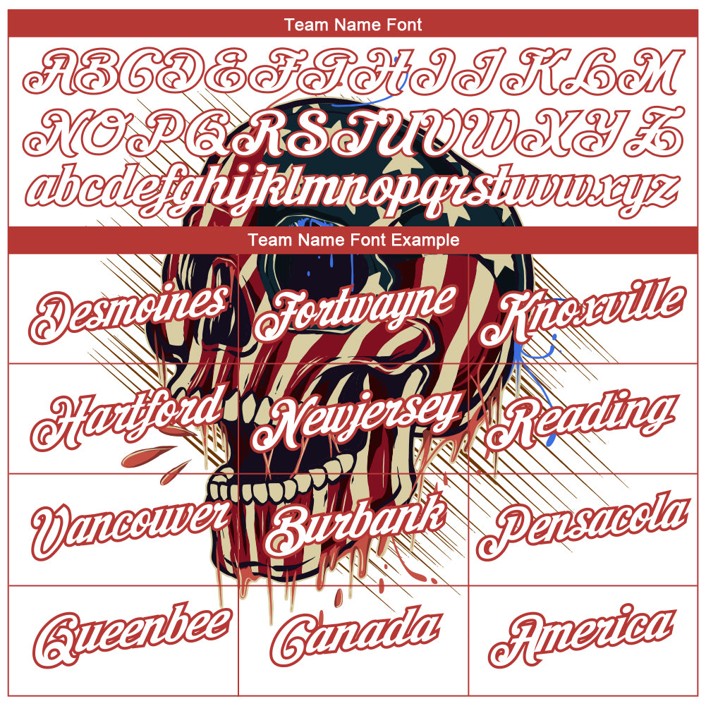 Personalized White Red 3D Skull Head With American Flag Performance T-Shirt Team Custom Name and Number