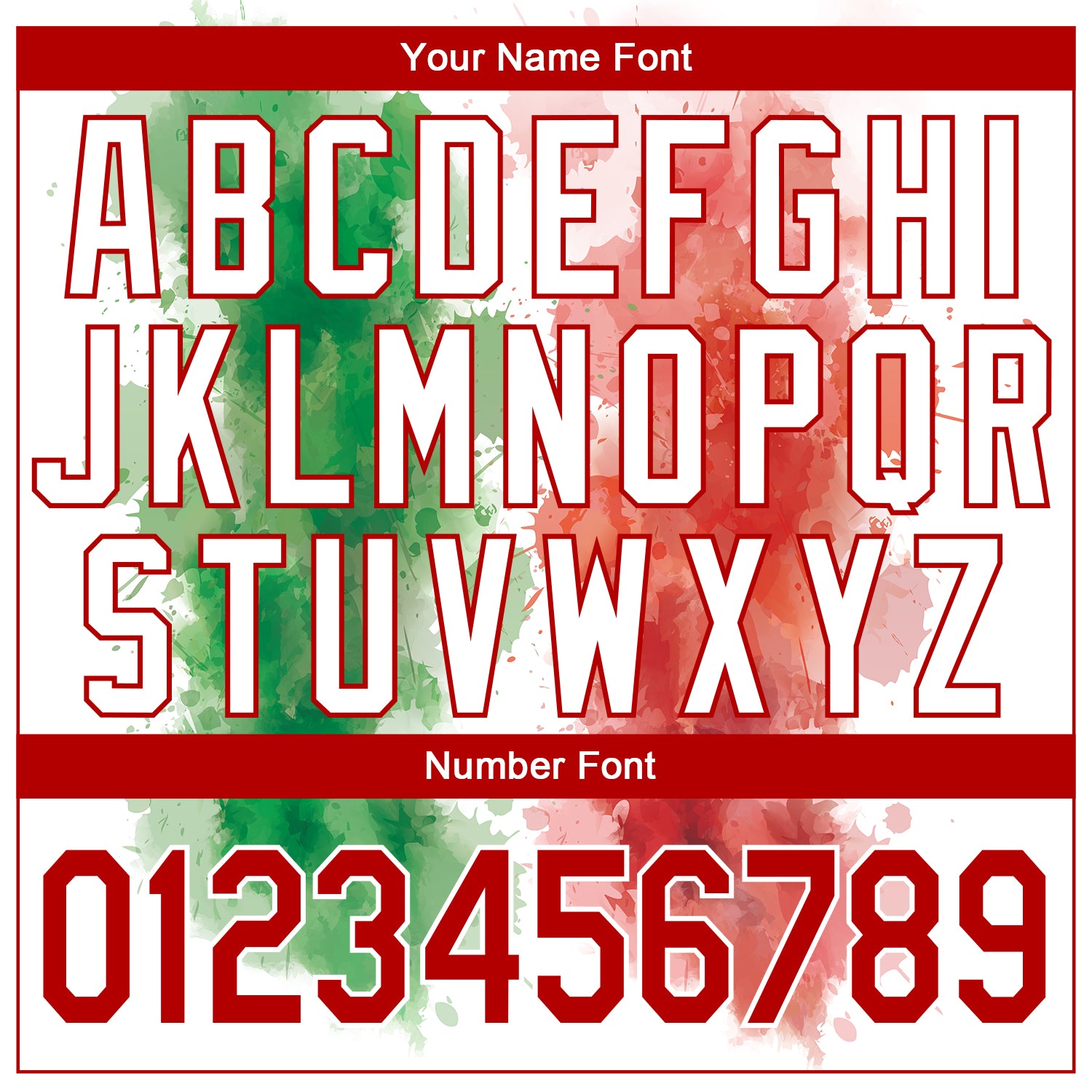 Personalized White Red-Kelly Green 3D Mexico Watercolored Splashes Grunge Design Performance T-Shirt Team Custom Name and Number