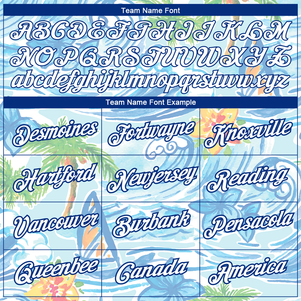 Personalized White Royal 3D Pattern Design Beach Hawaii Palm Trees And Flowers Performance T-Shirt Team Custom Name and Number