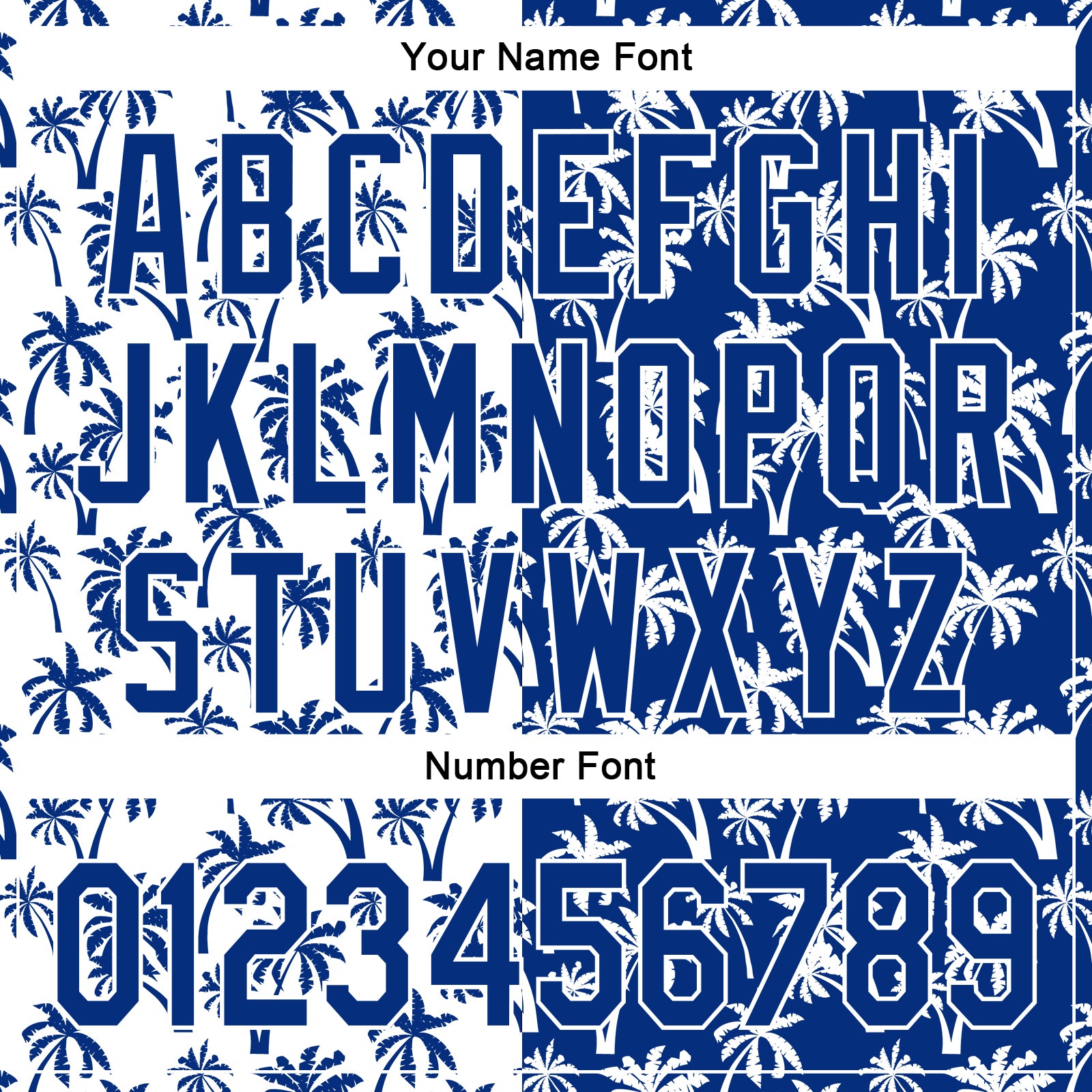 Custom Name and Number Tropical Hawaii Palm Trees 3D Pattern Baseball Jersey – Personalized White Royal Design Personalized