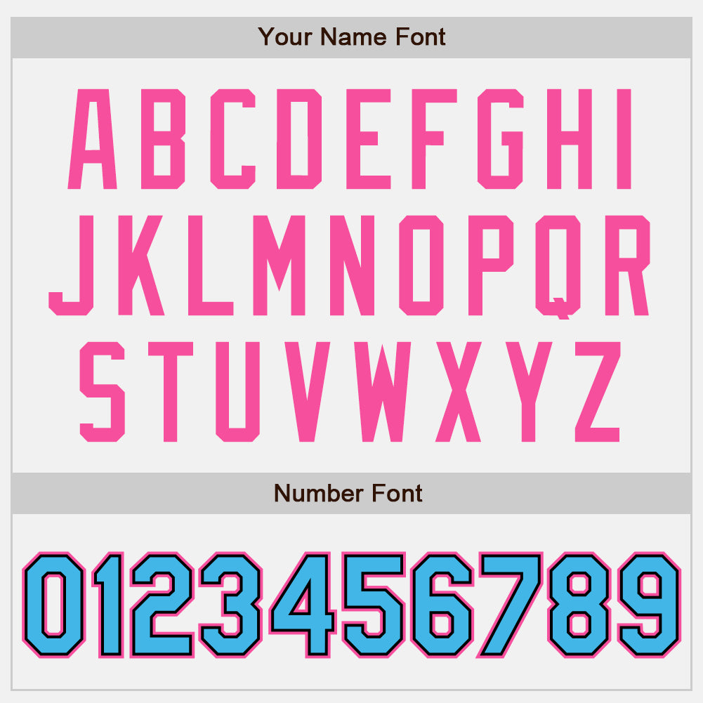 Custom Name and Number Varsity Letterman Jacket – Personalized Sky Blue and Black-Pink Full-Snap Bomber for Team Style Personalized