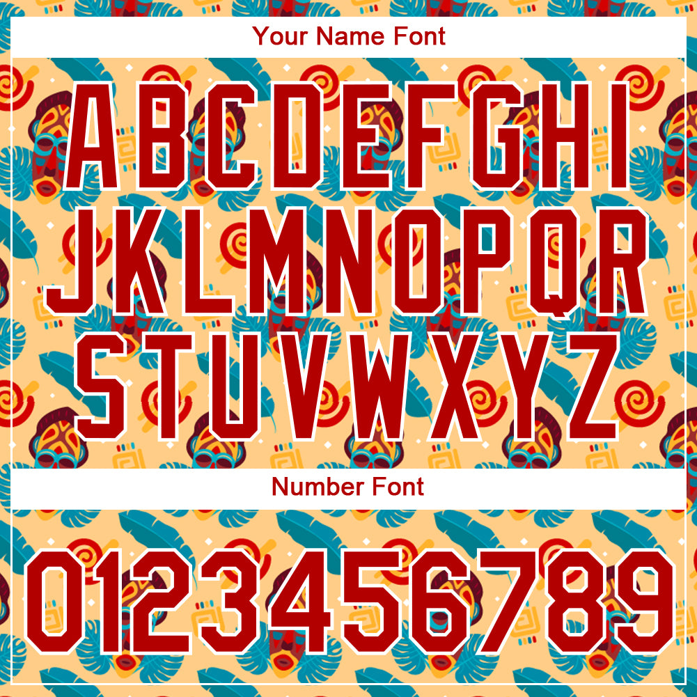 Custom Tropical Palm Leaf Performance T-Shirt with Personalized Name and Number – Yellow Red-White 3D Pattern Design Personalized