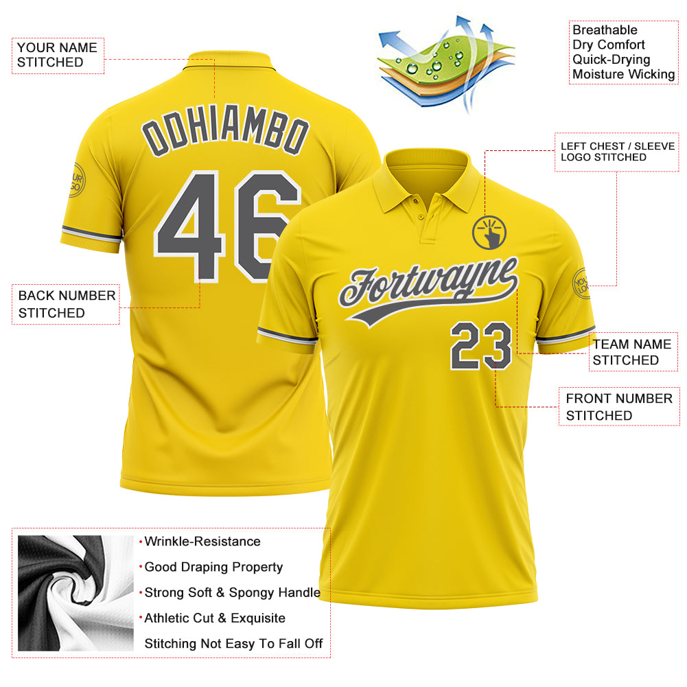 Personalized Yellow Steel Gray-White Performance Vapor Golf Polo Shirt Team Custom Name and Number